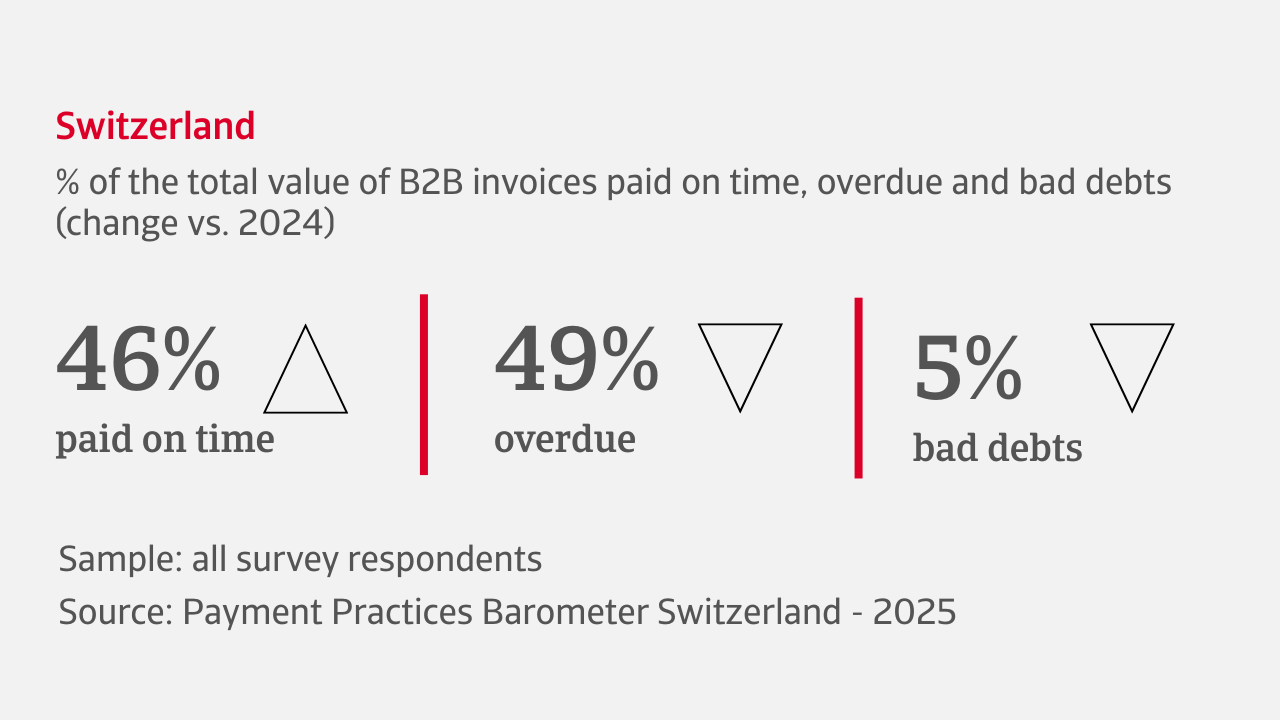 A growing number of companies in Switzerland tell us they anticipate facing financial headwinds during the coming months. 55% of businesses expect insolvency risks among B2B customers to increase, reflecting heightened concern about economic uncertainty and a probable tightening of liquidity conditions. The remaining companies expect no major changes, suggesting a cautiously stable outlook for some sectors, although optimism nevertheless remains guarded.