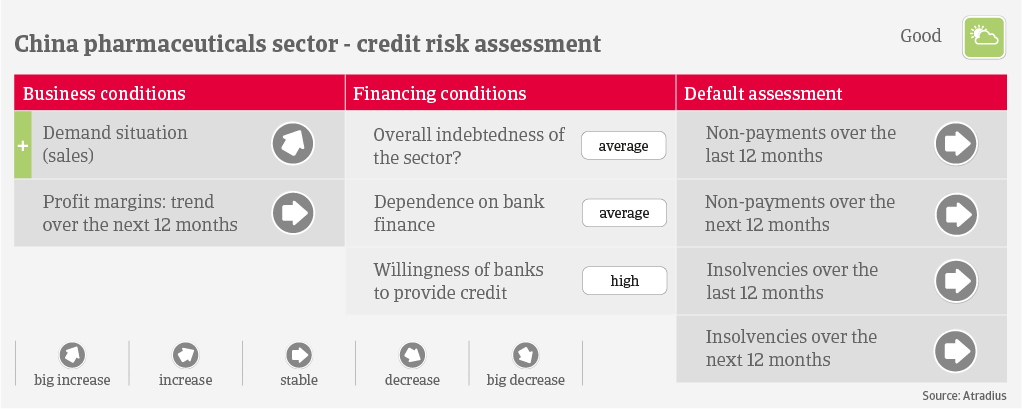 Given the robust growth outlook and government support, banks are willing to provide credit to Chinese pharmaceutical businesses. Payments in the sector take 60-90 days on average, and payment behaviour has been good over the past two years. However, sometimes hospitals protract their payments to distributors. We expect that both payment delays and insolvencies will remain at a low level in 2022. Our underwriting stance for the sector is generally open, in particular for state-owned enterprises.